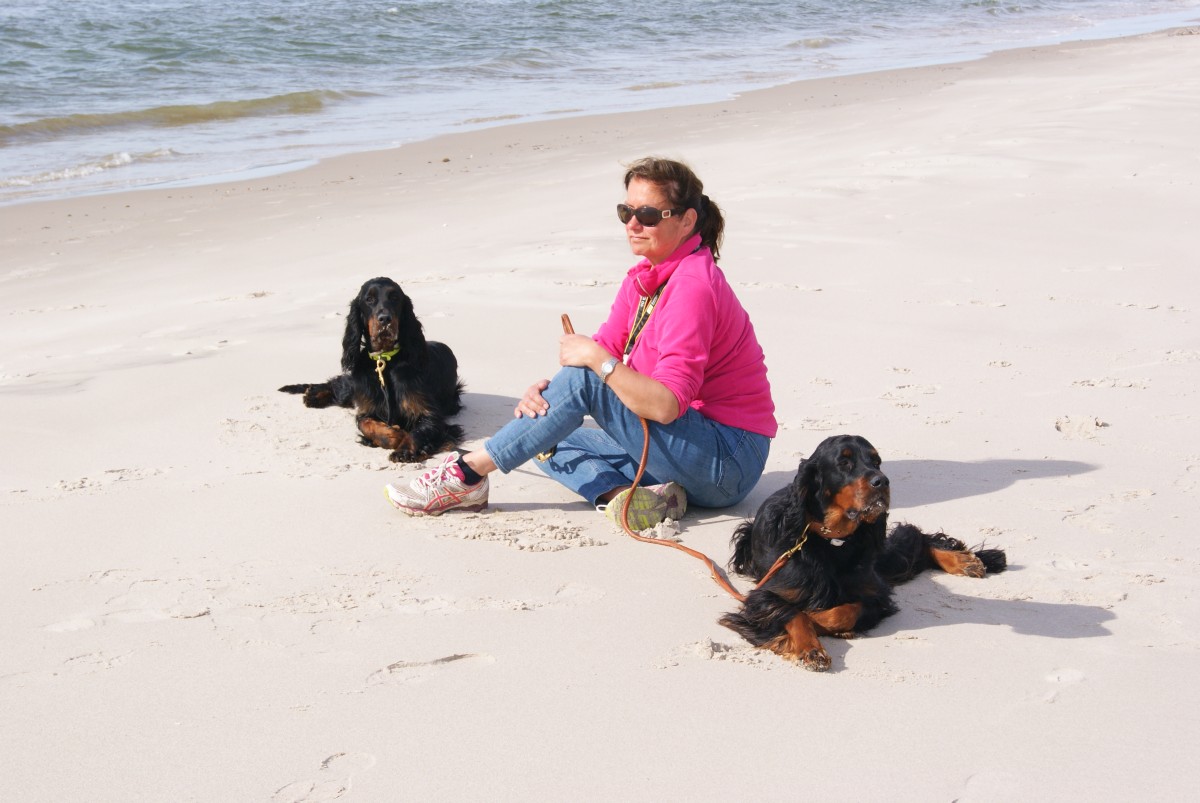 Ostermontag, 22.04.2019 - 6. Tag - Immer noch traumhaftes Wetter - keine Wolke am Himmel! Heute fahren wir mal nach Henne und sind überrascht, wie voll es noch ist! Keine Chance auf einen Tisch im Strandcafé, also ab zum Is-Huset und lecker Eis genießen. Flep hat einen netten Klön mit anderen Urlaubern, die auch einen Gordon zu Hause haben. Nach einem kleinen Abstecher nach Vejers, wo wir unsere alten Ferienhäuser besuchen. Den Nachmittags-Gang machen wir von Borsmorse - die Mädels flippen völlig aus.