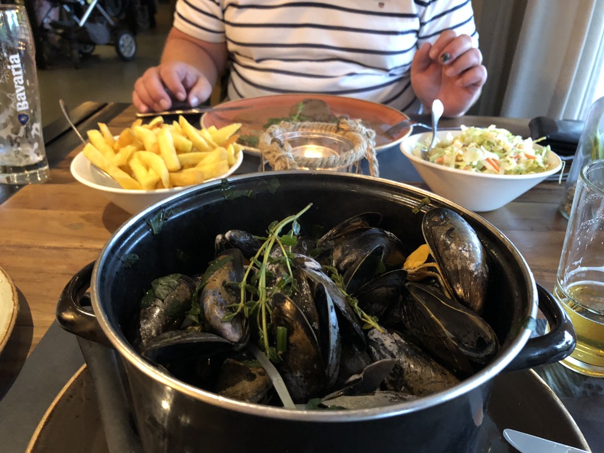 Sa, 02.06.2018 - 8. Tag - Nach Strand und Frühstück ist gemächliches Abbauen angesagt, was immer wieder von Klönereien mit Tanja und Kai "gestört" wird. Nachmittags fahren wir nach Renesse und landen prompt auf einem Weihnachtsmarkt. Schön ein wenig merkwürdig, im Juni "Last Christmas" zu hören....Wir kaufen noch ein paar Lebensmittel ein und pröktern noch ein wenig am SP. Um halb 7 gehen wir noch mal ins Restaurant. Ui, ui, ui, später treffen wir Tanja und Kai wieder mit dem Ergebnis, dass wir einen super gemütlichen Abend bei uns an Bord haben...
