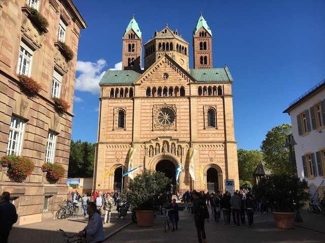 Fr, 30.09.16 Canet - 15. Tag - Große Aufbruchstimmung hier am Platz: Die einen fahren schon los, die anderen machen sauber und bauen ihre Zelt ab - überall wird gewuselt. Auch wir klaren auf, damit wir es morgen an Bord gemütlich haben. Heute gibt es noch mal tolle Wellen, aber am Strand selber ist es wegen des starken Windes ungemütlich. Auf dem Weg zum Imbiss treffen wir endlich den Irish Setter, nach dem wir schon Ausschau gehalten haben: "Tango", 6 Monate alt und die beiden Hunde toben toll miteinander. Total nettes Herrchen - aus der Pfalz und gebürtig aus Sachsen. Zum krönenden Abschluss gibt es für mich "Moules avec Frites" zum Mitnehmen - hat gerade noch so geklappt! TV-Kost: "Dance, dance, dance...." Sa, 01.10.16 Canet - Baumes-les-Dames - 16. Tag - Gegen halb 9 kommen wir weg, holen beim Bäcker Baguette & Co., kaufen im Supermarkt noch ein und los geht´s. Jetzt stehen wir blöderweise 20 km vor Lyon im Mega-Stau, der uns 1/2 Stunde kostet. Danach kommen wir gut voran und da das Wetter so schlecht ist (Dauerregen), beschließen wir entgegen unserer Planung nicht in Anse Zwischenstation zu machen, sondern lieber Kilometer zu machen. Also geben wir Gas und peilen Baumes-les-Dames an - leider ist auf dem SP kein Plätzchen mehr frei, daher checken wir auf den danebenliegendem CP Domaine dÁrcroix ein (15,50 €, süß). Der Platz füllt sich bis abends ganz gut - es regnet und es ist für uns empfindlich kühl....Gefahrene Kilometer heute: 740 Km! So, 02.10.16 Baumes-les Dames - Speyer - 17. Tag - Wieder hat mal der Zufall zugeschlagen: Direkt uns gegenüber steht ein WoMo aus Villingen, das wir schon im CP Le Farren gesehen haben. Und wirklich: Deren Insassen hatten uns auch schon am Hund erkannt und wir kommen nett ins Gespräch.Einige Minuten später kommt ein kleiner Gordon Setter aus einem WoMo aus Celle gesprungen: Leonie, die dann schön mit Nala spielt. Natürlich werden dann über Gordon Setter und Südfrankreich gefachsimpelt. Nachdem wir uns voneinander verabschiedet haben, geht es für uns Richtung Pfalz weiter. Optimistisch peilen wir einen SP in Dierbach am Weingut A. Geiger an, doch bei unserem Glück ist natürlich in Dierbach gerade irgendein Volksfest und alles ist rappelvoll. Leicht entnervt, programmieren wir das Navi auf den SP in Speyer am Technikmuseum. Nach einigem Hin und Her bleiben wir hier für die letzte Nacht stehen, aber ganz im Ernst: 22,-€ viel zu teuer, keine parzellierten Plätze und das Beste: Keine Möglichkeit, die Chemietoilette zu entsorgen - geht gar nicht! Wir erkunden zunächst Speyer - leider sind im Dom die Kerzen aus, so kann ich keine Kerze anzünden - wenn's läuft, dann läuft's.....In Speyer ist heute verkaufsoffen, überall hat es Stände und man trinkt sich allerorts ein Weinchen. Zurück am Dicken, nehmen wir das Fahrrad, um unsere Toilette an den Stadtwerken Speyer zu entsorgen - 1 Weg Fußmarsch 20 Minuten - wenn's läuft, dann läuft's....