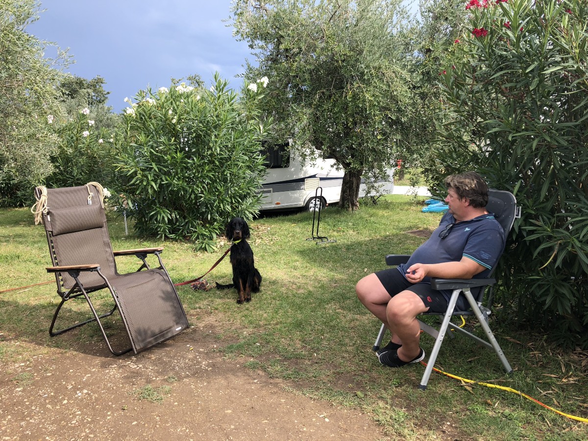 Dienstag, 28.08.2018 Ehrwald - San Felice del Benaco - 2. Tag - Gut gelaunt geht es weiter zum Endziel San Felice del Benaco. Wir kommen gut über den Brenner und genießen die herrliche Landschaft. Um 14.00 Uhr erreichen wir den CP Fornella, den wir vom letzten Jahr noch kennen. Flep stellt den WoWa schon recht routiniertauf unseren vorläufigen SP 713 unnd wir richten uns häuslich ein. Ich zeige Taloula schon mal den Hundestrand bei herrlichstem Wetter mit ca. 26 Grad.
